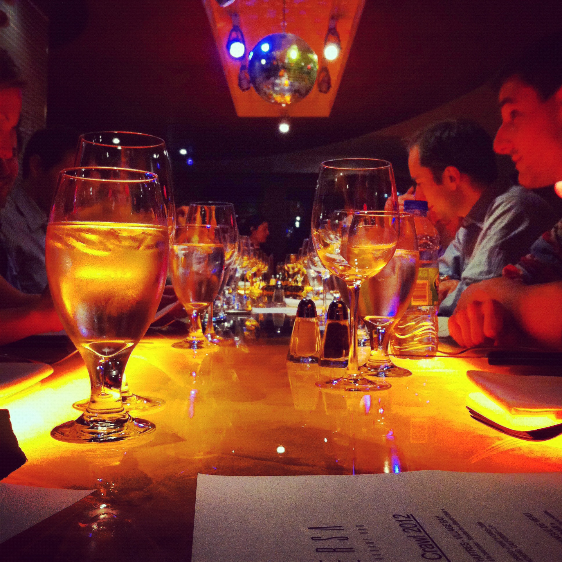 La soirée de première se poursuit: je me retrouve attablée avec des gens (fort sympathiques!) que je rencontre pour la première fois au Clocher Penché. On me sert mon premier rosé de la saison (un délice!). Et je me retrouve à savourer un mijoté de poulpe, calmars et moules… 3 choses que je n’aime pas vraiment, à moins qu’elles ne soient frites! Mais j’ai tout mangé – faut avouer que c’était loin d’être mauvais!