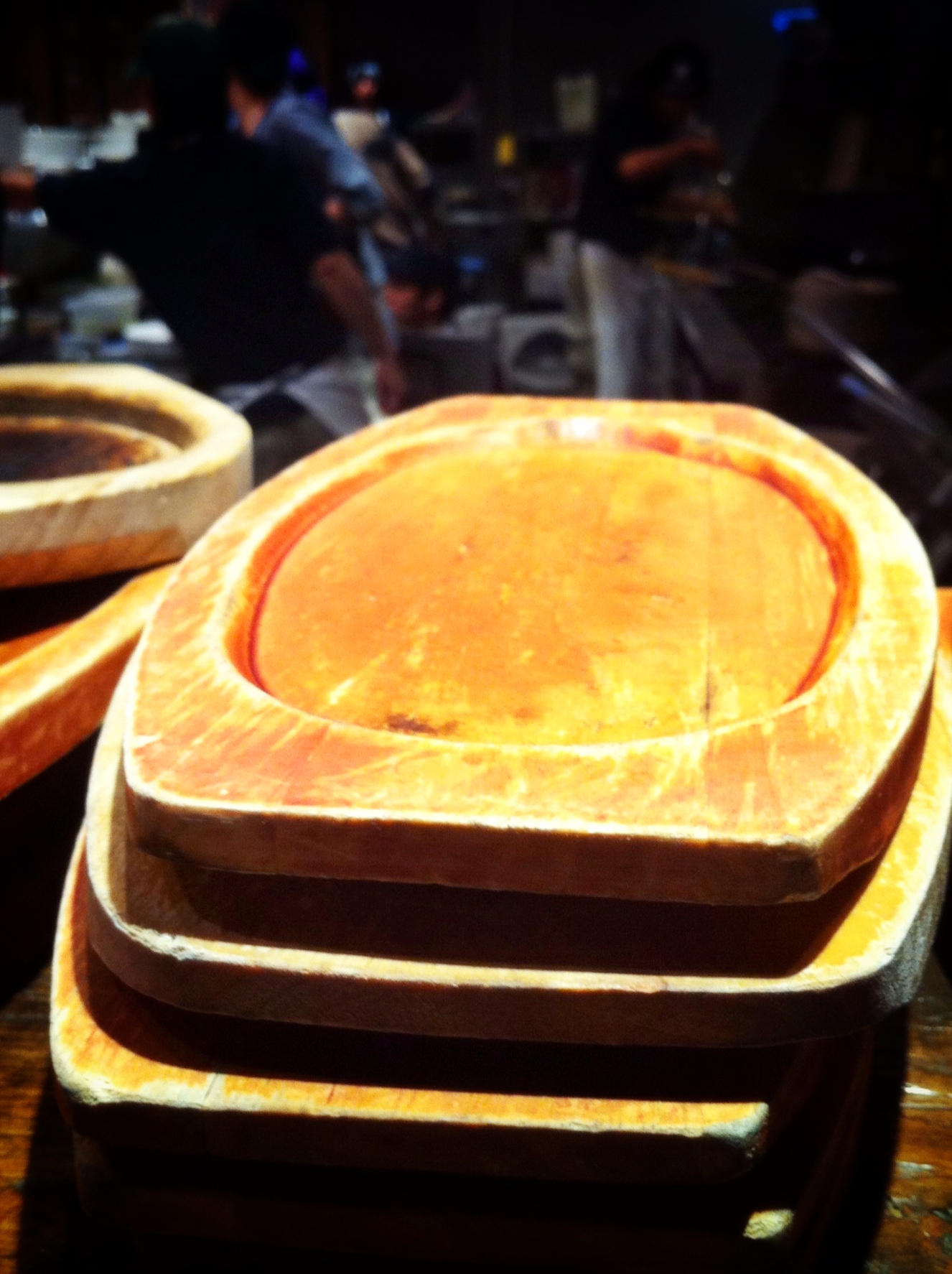 Comme ça ouvre à 17h, on se pointe à 17h20. Line up. Oh oh. Je m’informe, toute souriante, jouant de mon faux accent de touriste. Je peux laisser mon nom, et revenir vers 18h20. On appelle les tables disponibles, et si je suis là, tant mieux. Bref, c’est un système de premier arrivé, premier servi, mais sur réservation.