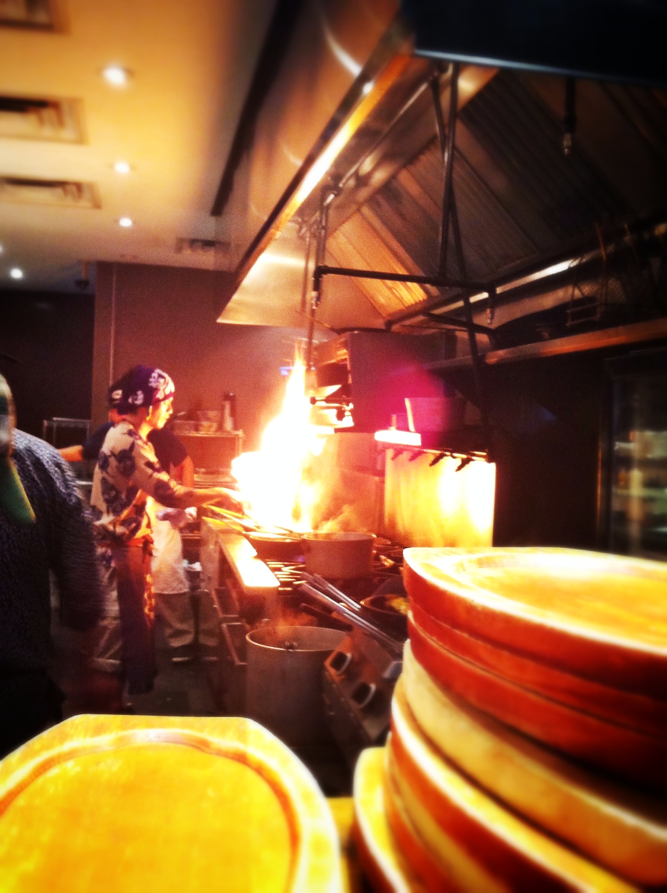 Non seulement l’ambiance est folle folle folle, mais la bouffe est exquise et, comme nous sommes assises au bar, nous avons vue sur l’action. Heu… WOW! Petite pensée reconnaissante pour François Blais à insérer ici.