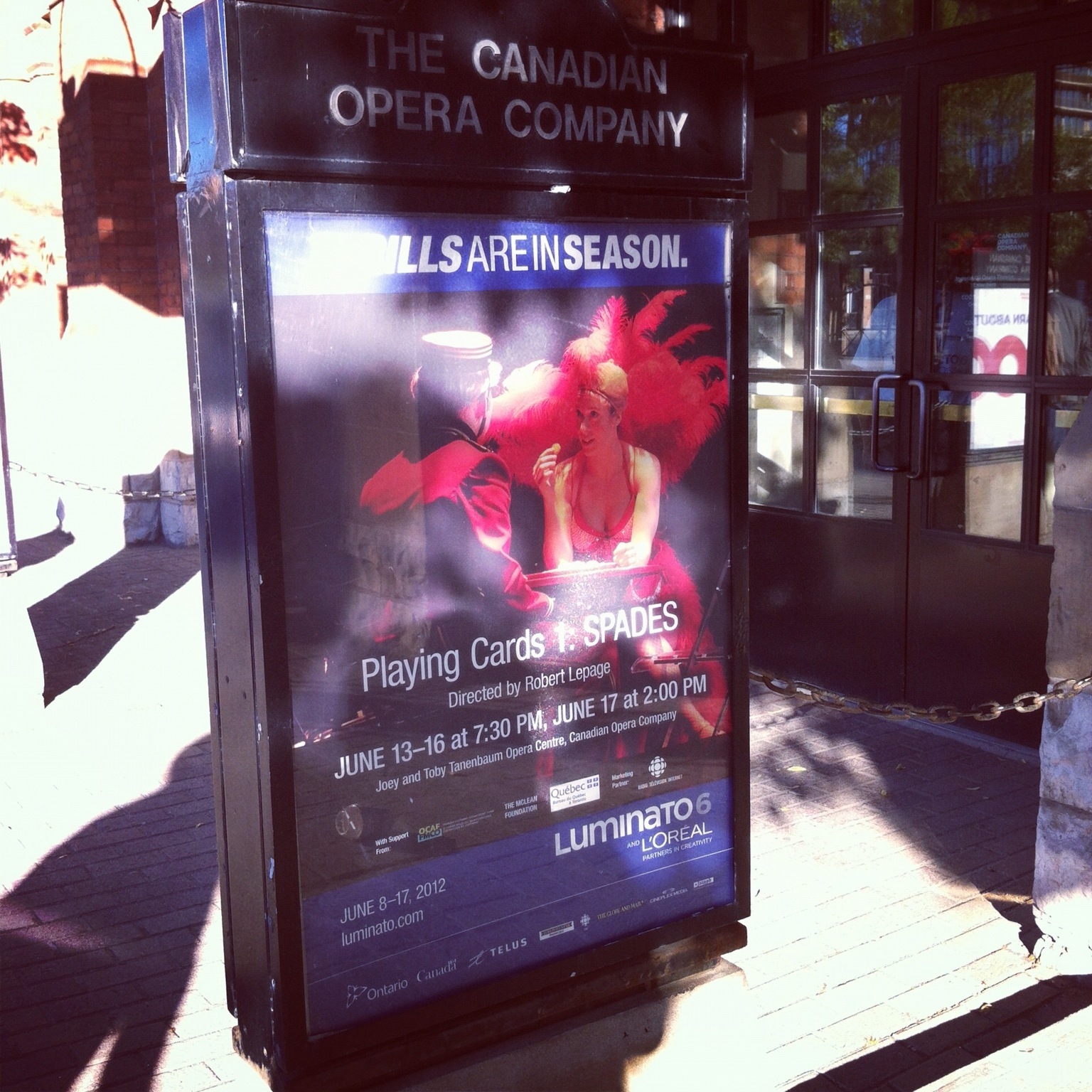 Un arrêt à la LCBO où je salive devant le choix de gin (so many gins, so little time!) et de vin (un riesling Cono Sur à 9.95$!!), et nous nous dirigeons vers la pièce de théâtre qui occupera notre soirée.