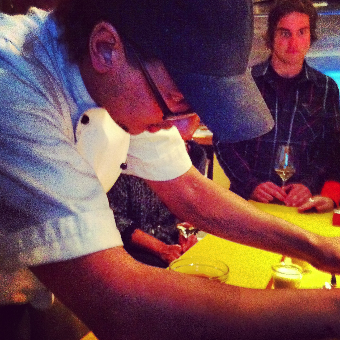 Et pourquoi pas quand on s’y arrête? Après tout, il ne semble pas y avoir de consensus sur ce qui constituera le 10e art… et l’art culinaire et la gastronomie font partie du lot des possibles. Dès lors, le concept de documentation du processus de création culinaire devient pour moi excessivement intéressant – on l’a fait dans une certaine mesure avec El Bulli; on a effleuré le monde culinaire avec Durs à cuire, le documentaire qui porte sur Toqué! et Au Pied de cochon; Anthony Bourdain nous a révélé quelques secrets dans Kitchen Confidential… Mais outre le documentaire sur El Bulli, à ma connaissance, on s’est très peu attardé au processus de documentation d’élaboration d’un menu gastronomique.