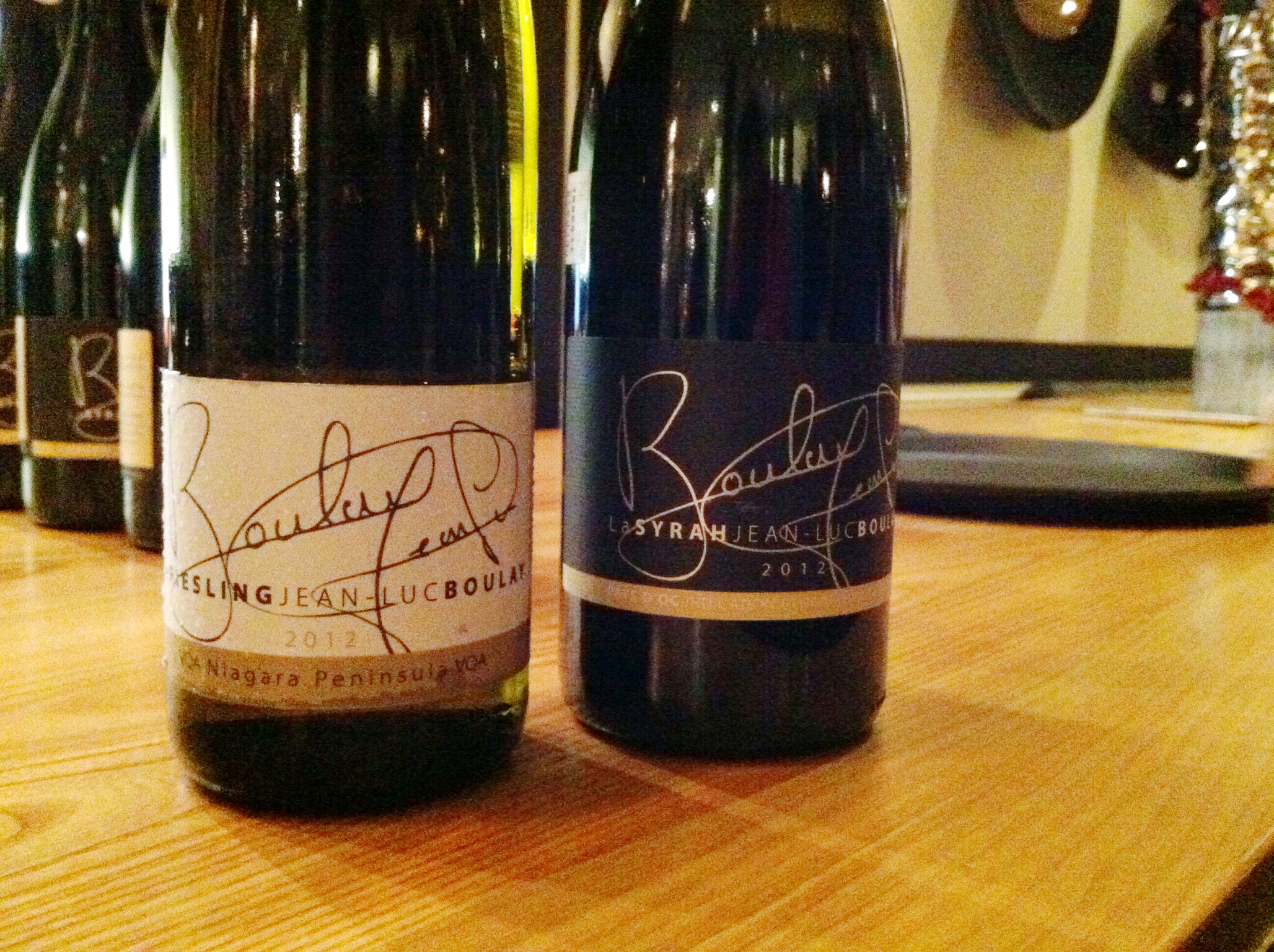 Tout d’abord, on constate rapidement que chez Jean-Luc Boulay, le choix des gens avec qui il travaille est aussi (sinon plus) important que les produits qu’ils créent. Ainsi, c’est l’oeil pétillant et enthousiaste, et même avec affection (et respect!) que le chef, l’un des juges de l’émission Les Chefs (faut-il encore le préciser?), nous parle des deux vignerons avec qui il a élaboré ces cuvées, de véritables coups de coeur: Paul Pender de Tawse Winery (riesling) et Clément Mengus du Domaine de Cazaban (syrah). La présentation de ces vignerons, de leur collaboration avec Jean-Luc Boulay, de leur méthodes et leur façon de travailler nous donne autant envie de goûter le vin que la description des produits.