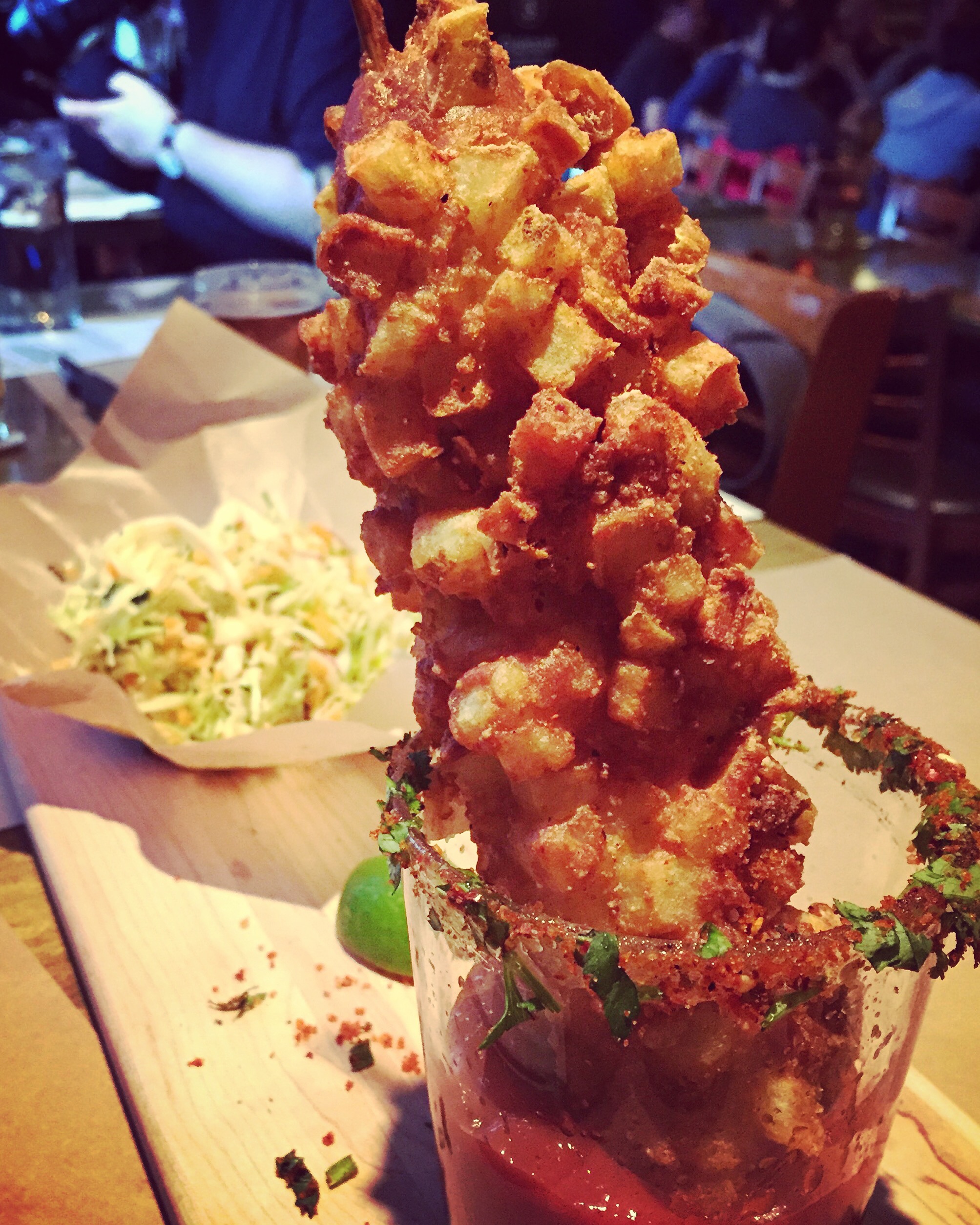 Ce plat est un gigantesque hot dog fait d’une saucisse de sanglier William J. Walters à la Guinness et au poivre vert dans un pain brioché avec sauce à la viande à la St-So, fromage en grains et side de chips. La sauce à la viande est particulièrement savoureuse… Et pourquoi ne pas garder ce plat au menu, peut-être en permettant de choisir différentes saucisses?