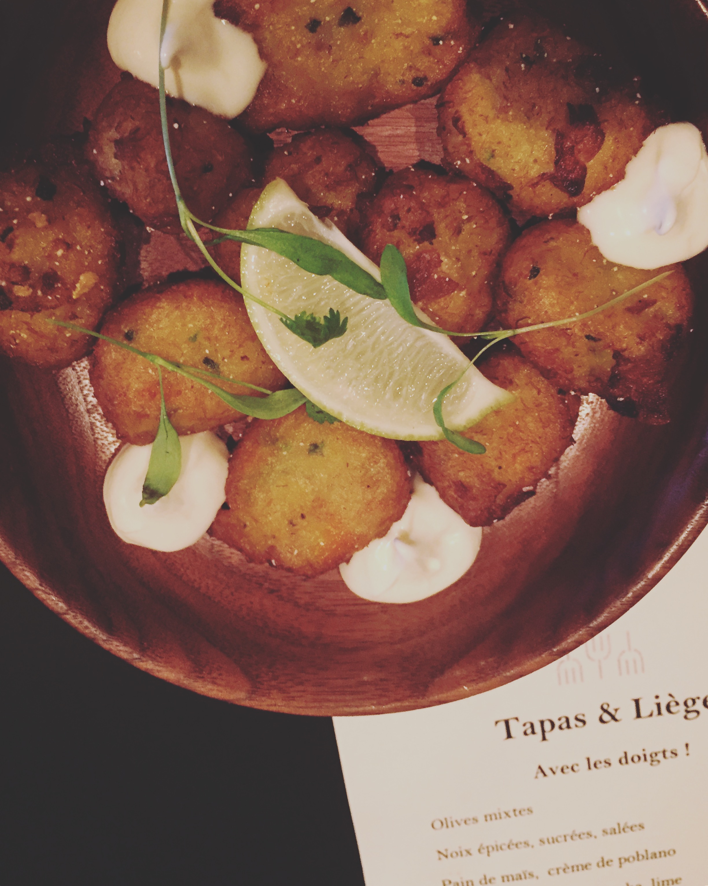 Je surveillais l’ouverture de Tapas & Liège depuis un certain temps. D’entrée de jeu, je dois avouer que la rue Maguire est pas mal en dehors de mon circuit, mais sachant que Pierre-Luc Cullen était l’un des deux copropriétaires, je me doutais bien qu’à tout le moins, la carte des vins saurait me plaire. Ce dont je ne me doutais pas, c’est que l’endroit allait me plaire autant, de la déco à ce que j’ai retrouvé dans mon assiette! C’est la SDC Maguire qui doit se réjouir de l’initiative de ces deux jeunes entrepreneurs, car Tapas & Liège est un bar à vin qui fera faire des détours à bien des amateurs de vins.